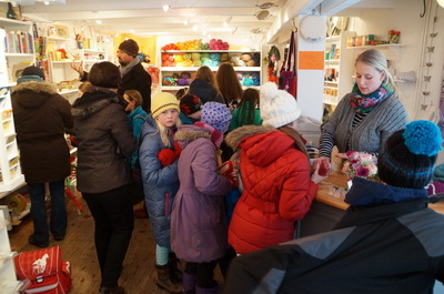 Ständig wechselndes Angebot von Blumen und Spielwaren