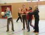 In der Mittelstufe (Klassen sechs bis acht) geht der spielerische Unterricht in ein kontinuierliches Üben über. Die Genauigkeit und richtige Durchführung der Einzelbewegung wird jetzt stärker betont, aber auch Haltekraft, Festigkeit, Beharrlichkeit und Ausdauer werden nun von den Schülern/innen verlangt. In der Leichtathletik werden die technischen Bewegungsabläufe des Laufens, Werfens und Springens intensiver geschult und im Turnen Um-, Über- und Unterschwünge am Reck und Barren, Balancier-übungen auf dem Balken, Rollen und Handstand am Boden und Sprünge über den Kasten und Bock mit Sprungbrett oder Minitramp angeboten. In der sechsten und siebten Klasse wird das Basketballspiel und in der achten Klasse das Volleyballspiel eingeführt. In der 11. und 12. Klasse wählen die Schüler zwischen verschiedenen Disziplinen, um diese vertiefen zu können.